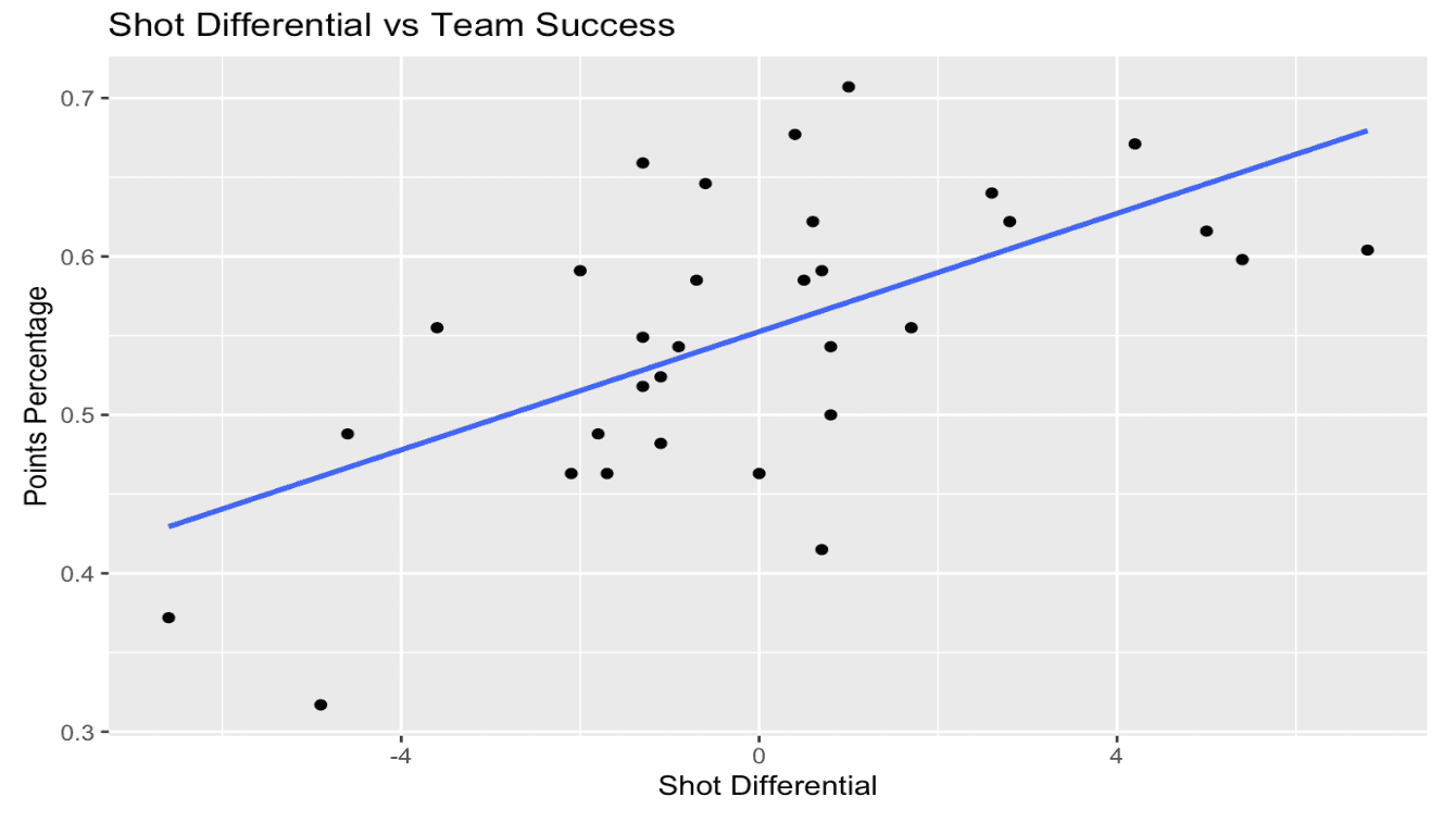 Shots allowed per game was highly significant. Shots taken per game had much less of a correlation.